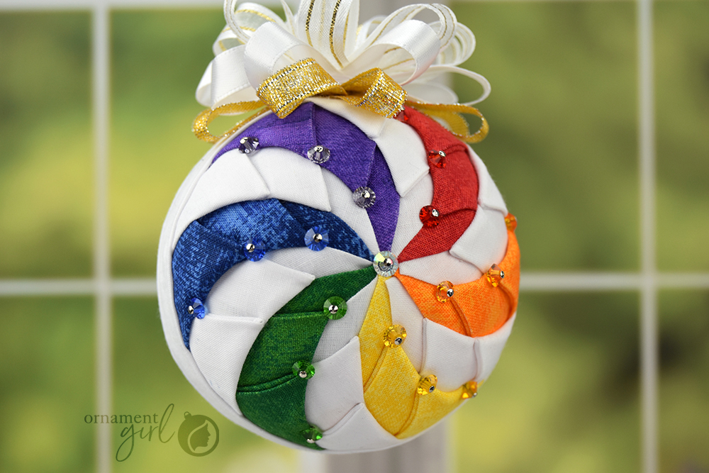 Welcome to my Ornament Girl Inspire Series! These posts will take you only a few seconds to read. Each one will simply contain an ornament picture meant to inspire you & give you some new ideas. Today’s ornament: a gorgeous Rainbow Spinflower ornament. Pattern Info: This ornament was made with the Spinflower Pattern. (By the way..…